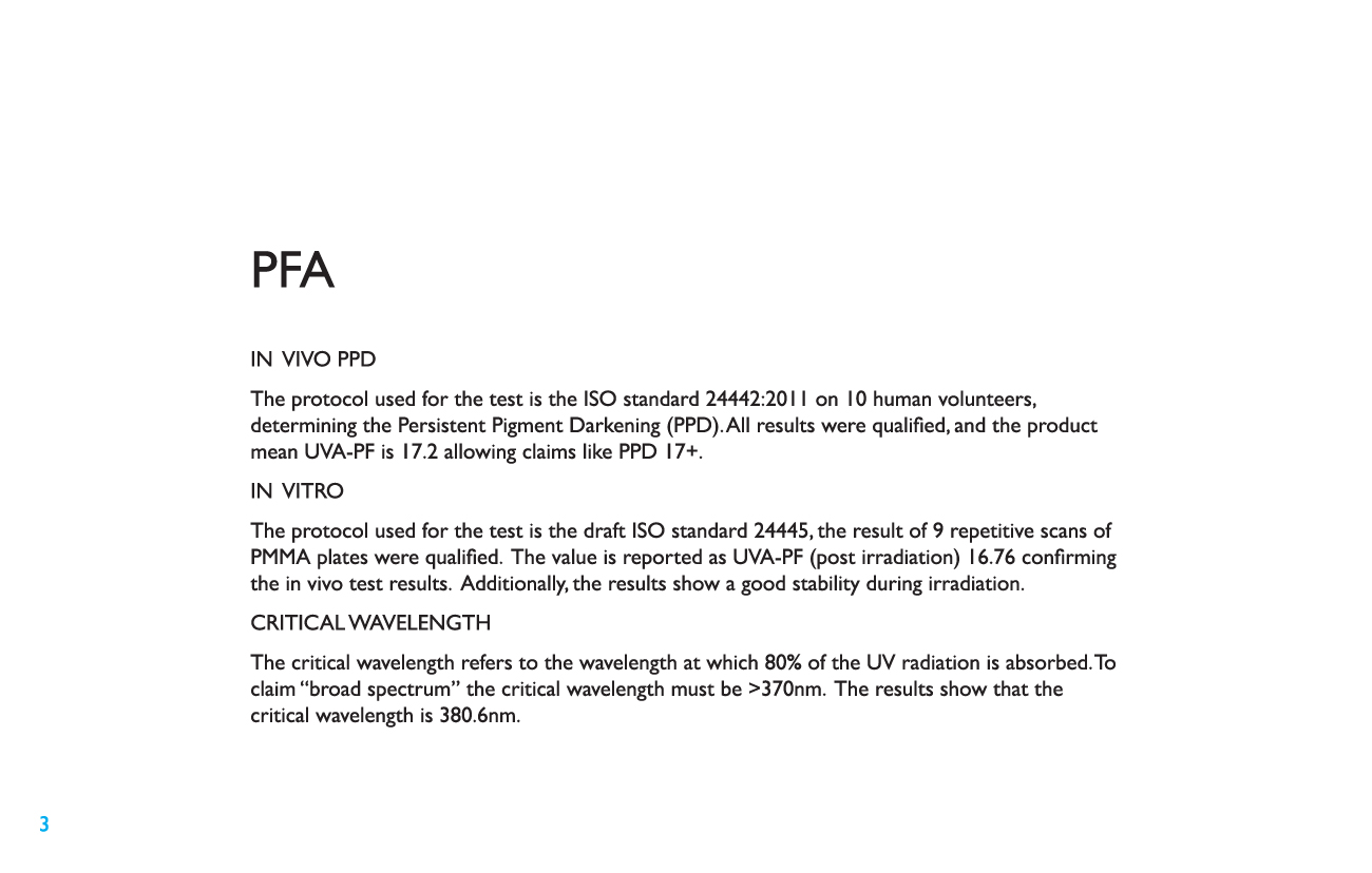 PPD(持续性色素黑化)是一种测量 UVA 紫外线防护等级的体内方法。这是用于评估UVA 紫外线防护等级的一种非常有效的方法,在日本和欧洲都强制要求实施该方法。